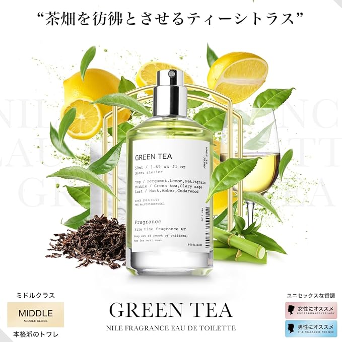 『グリーンティー』は、爽やかでリフレッシュ感のあるティーフローラルの香りを基調とした香水です。